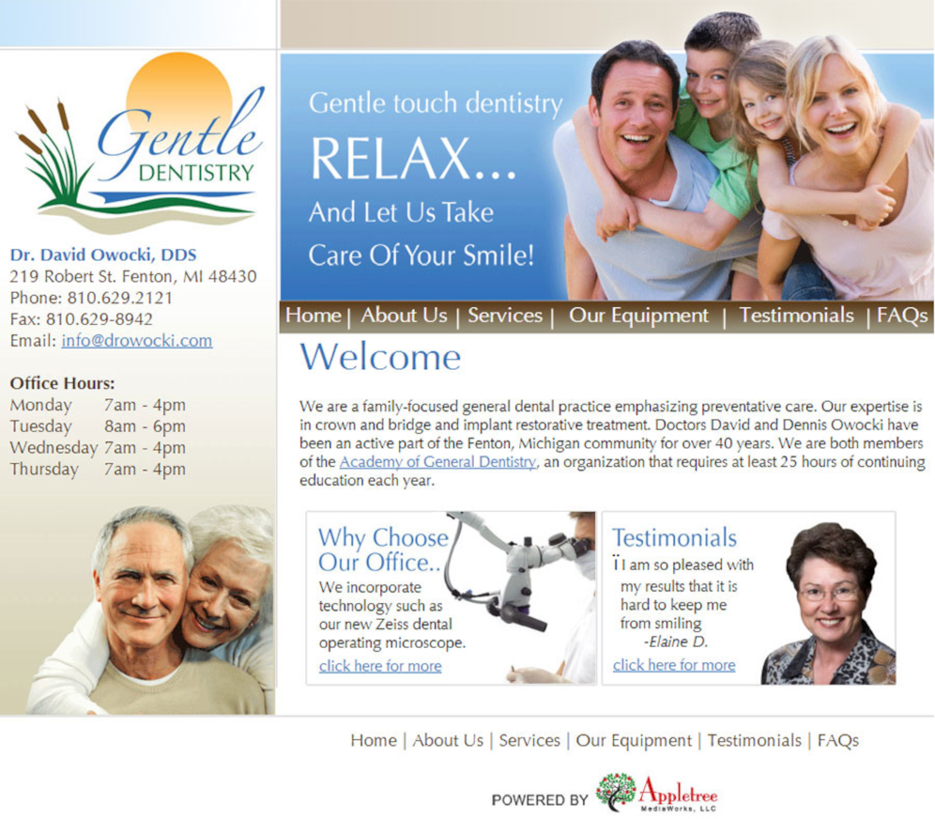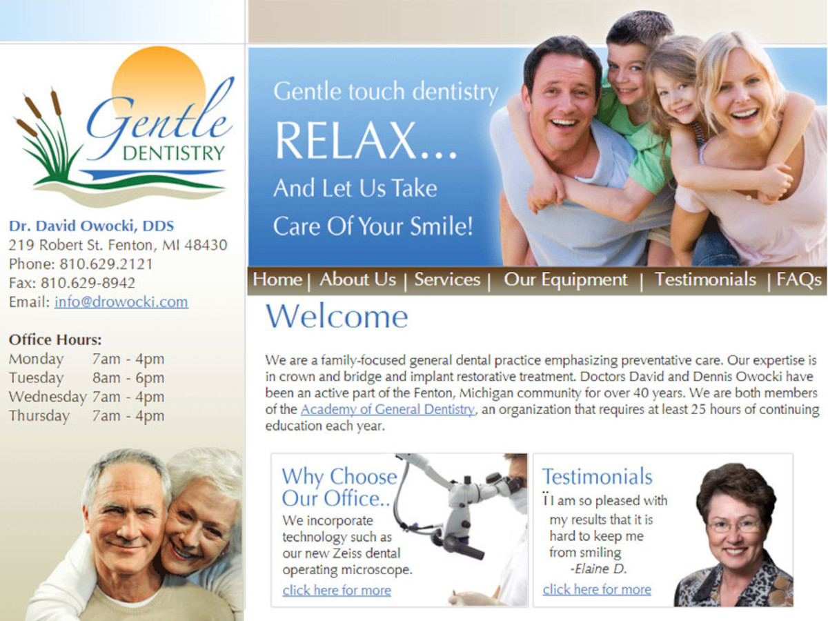 Custom Web Site Design for Dr. Owocki, DDS - Gentle Dentistry